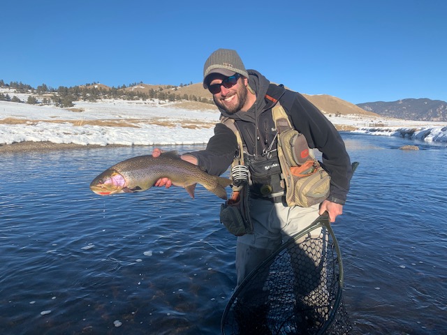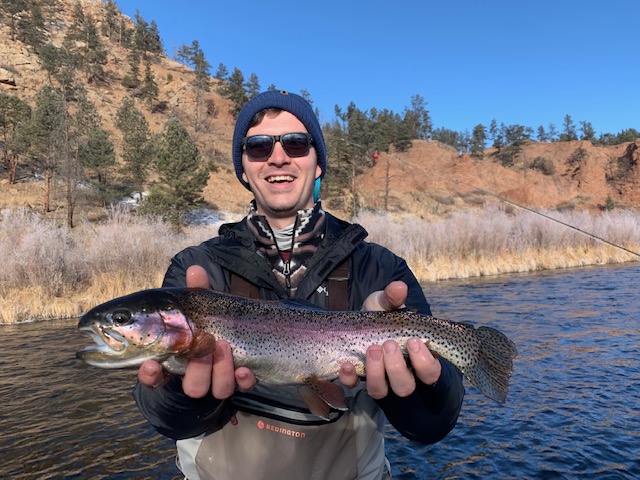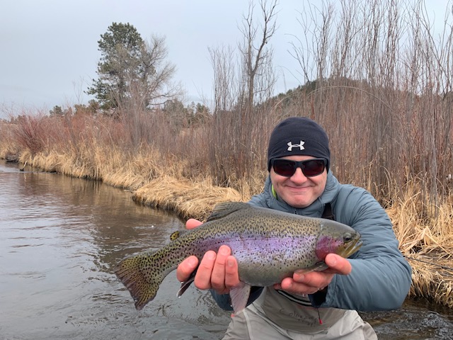 It has been a great winter for fly fishing near Denver and Colorado Springs. The South Platte River is experiencing flows well above average for this time of year. This has led to fish being more much active than normal despite the winter cold. We have been running most of our guided fly fishing trips to the South Platte River near Deckers. The high flows have the fish spread out nicely throughout the entire river. General rule of thumb for winter fishing is to target fish in the slow, deep pools. While plenty of fish can be found there, the high flows also have the fish spread out in the riffles and runs. These are the fish that are feeding more actively and our favorite to target. We have been catching most of our fish on midge patterns and small BWO imitations. As the days get longer, fish will eat eggs as the rainbow trout begin to spawn.